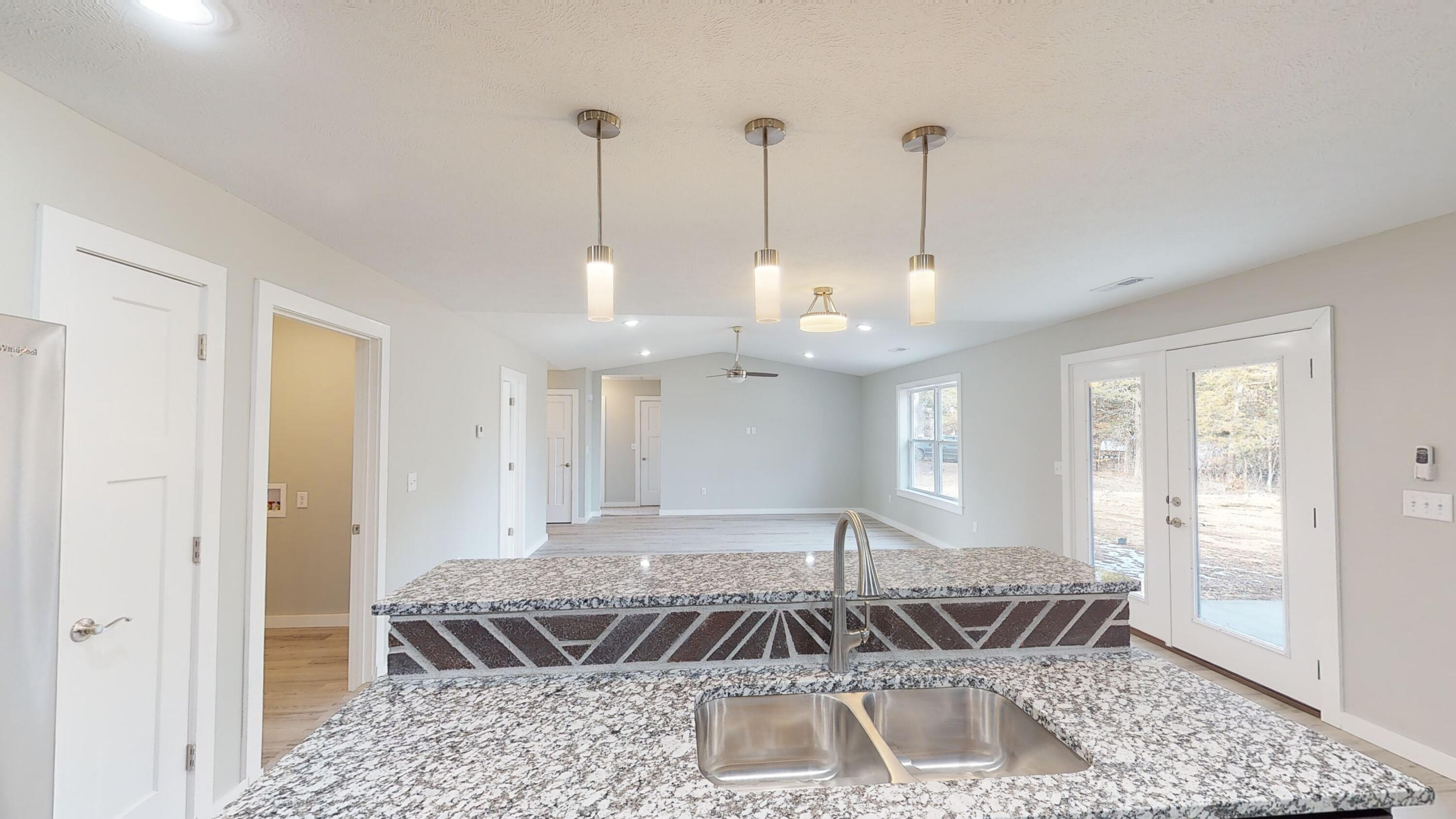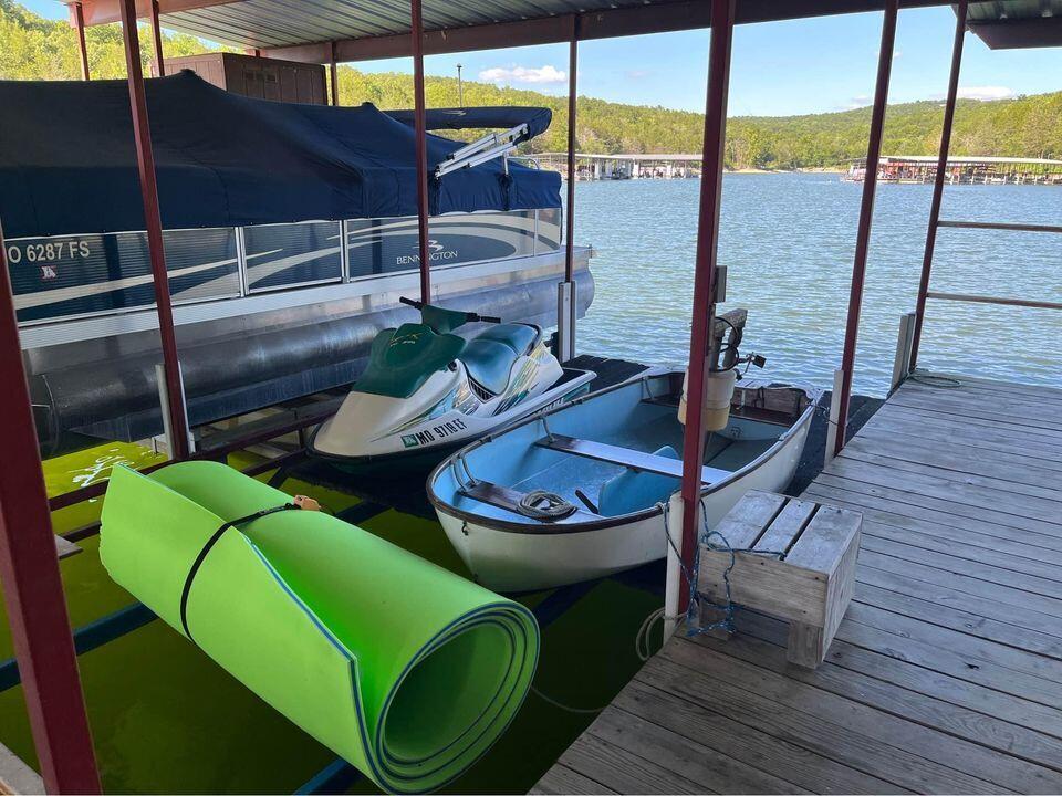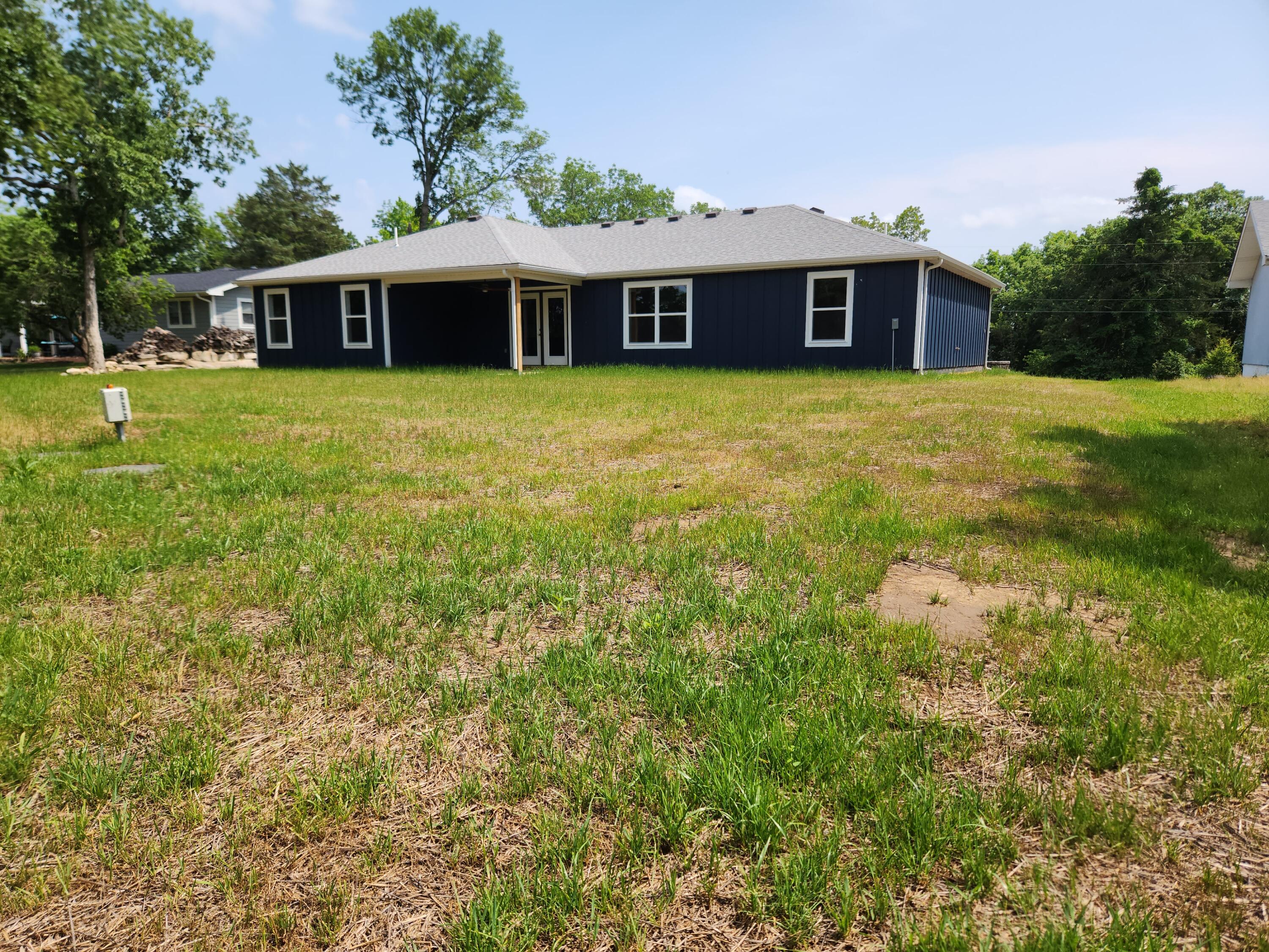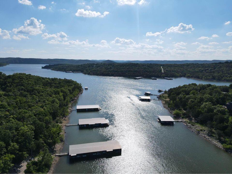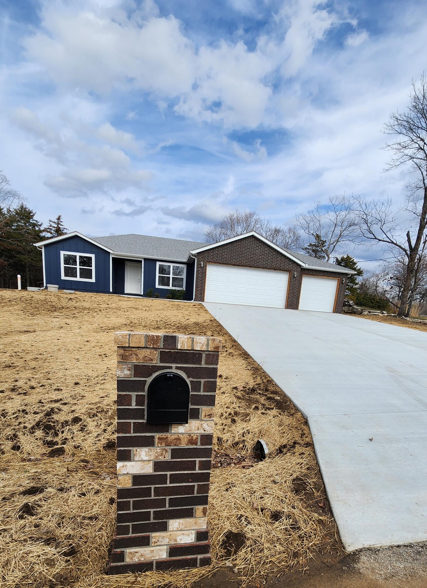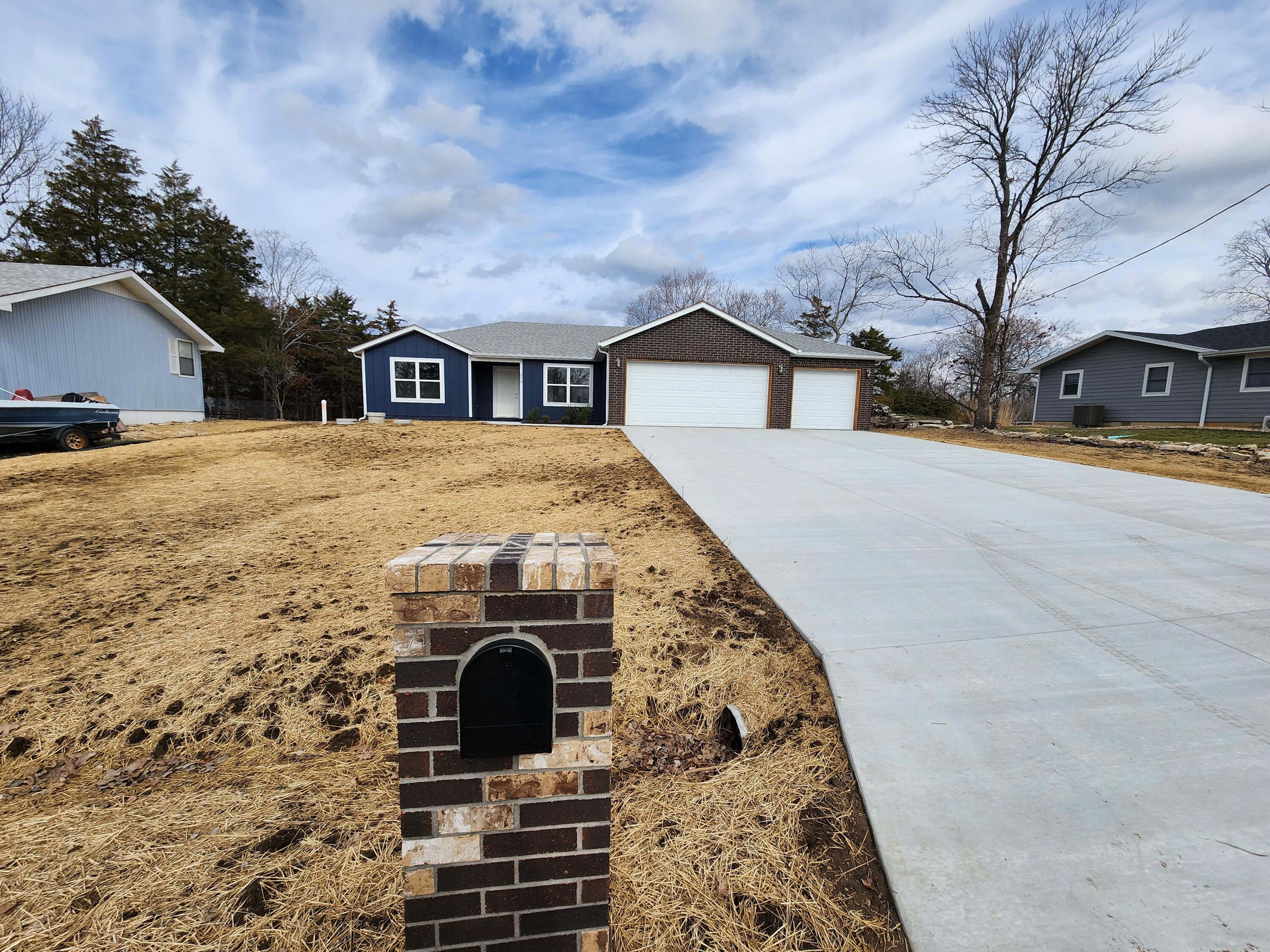 This Newly COMPLETED new custom build is loaded with upgrades...take a look at this!! 3rd party boat slip available (additional $) less than 5 minutes away!! This home features 3 bedrooms, 2.5 baths, an office with custom shelving in various areas and a 3 car garage. Enter the front door to a wide open plan. This home features custom brick tile wrapping the spacious island, stainless steel appliances granite counter tops and subway tile on the backsplash finishing off this well equipped kitchen it also includes a matching refrigerator!! Upgraded modern style lighting makes this home bright and inviting! Every room has a remote controlled ceiling fan, including the office. The home features luxury vinyl flooring in the high traffic areas. The master suite features double bowl vanity, walk in shower, linen closet and a private water closet. The master closet is enormous!! On the opposite side of the home are 2 oversized guest bedrooms and a shared bath. Feel like relaxing outdoors? Enjoy the covered back porch which also has a ceiling fan to relax your cares away on your private oasis. Table Rock Lake is a short stroll away by road it is less than 900 feet away. This home is complete and ready to move it!! 3rd party boat slip available for additional money. Approximate measurements 10x20 with swim platform.