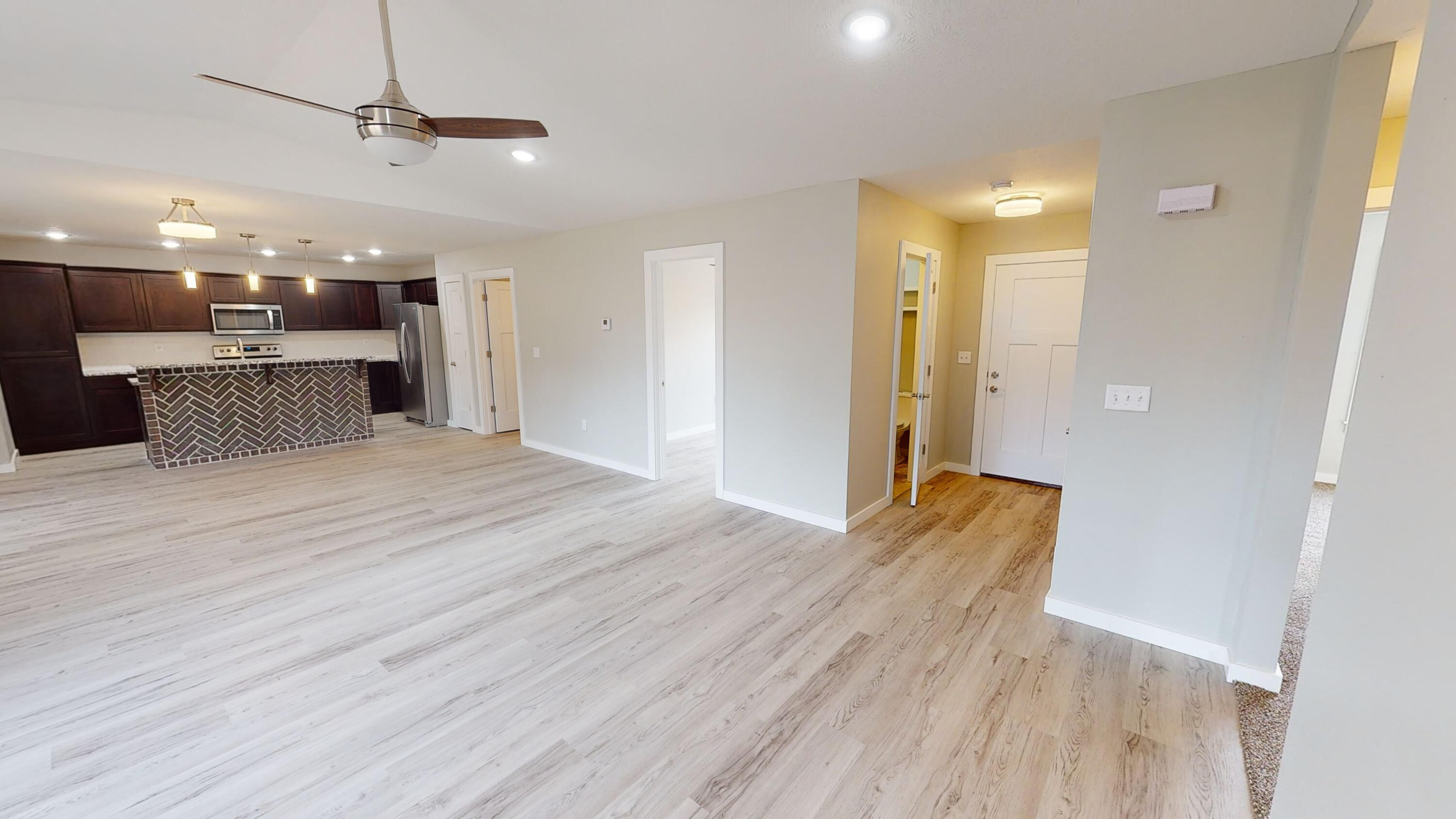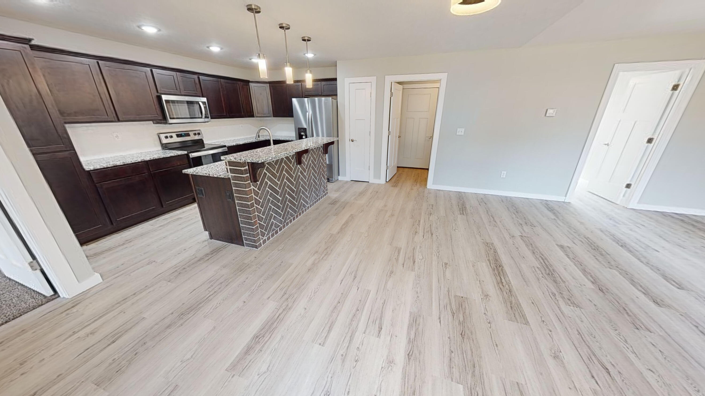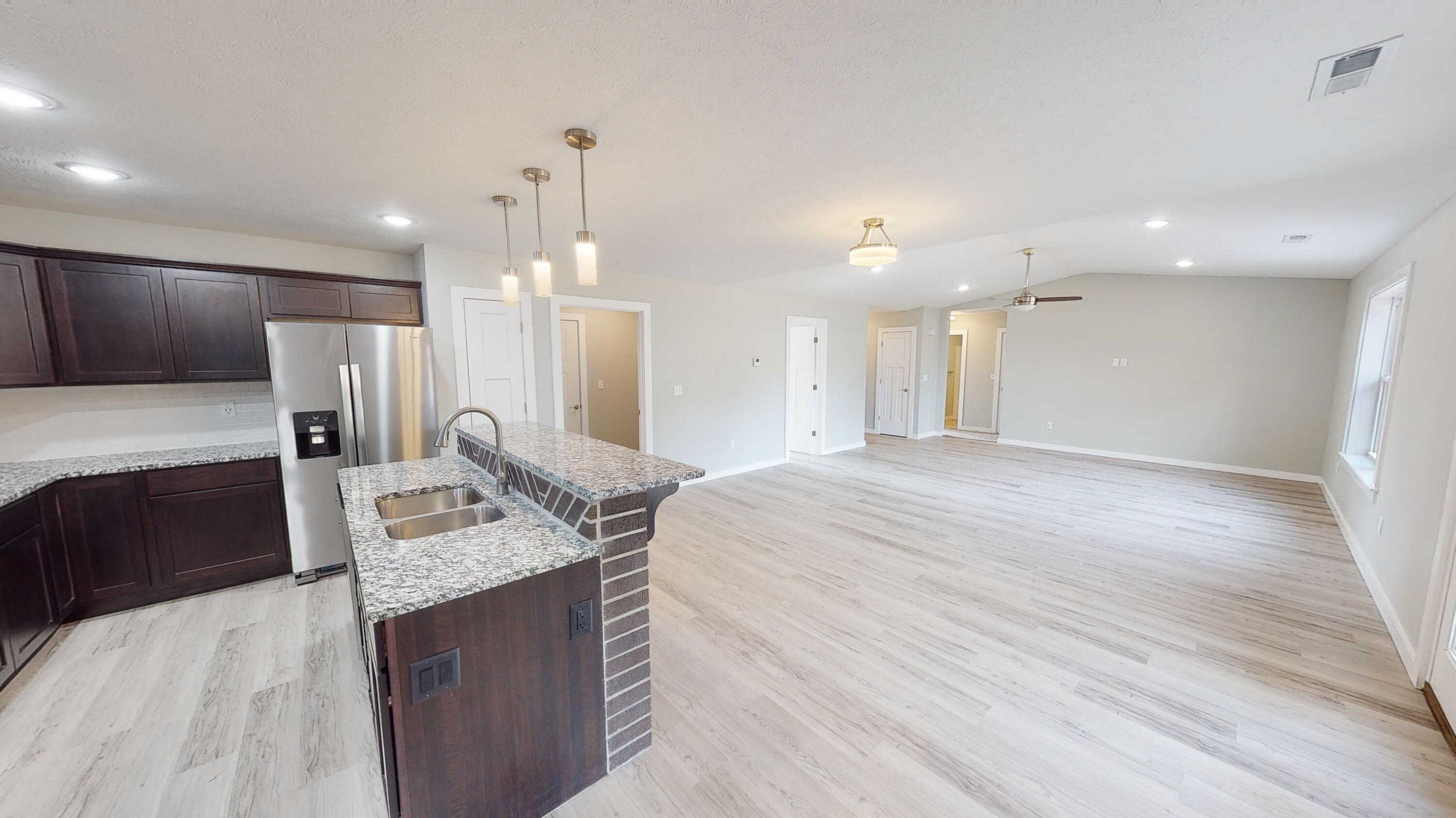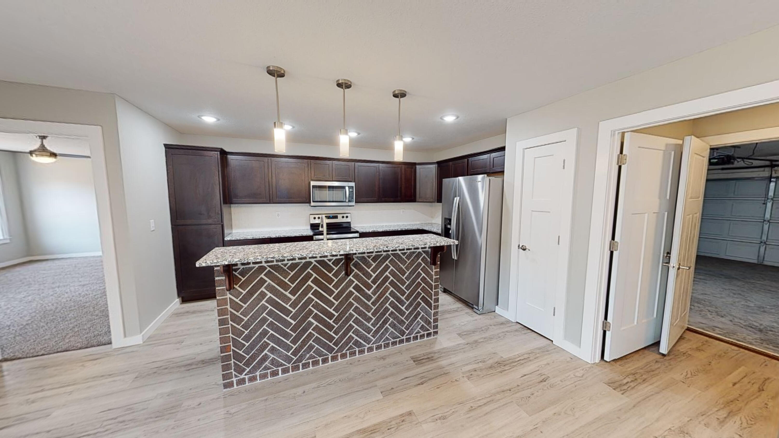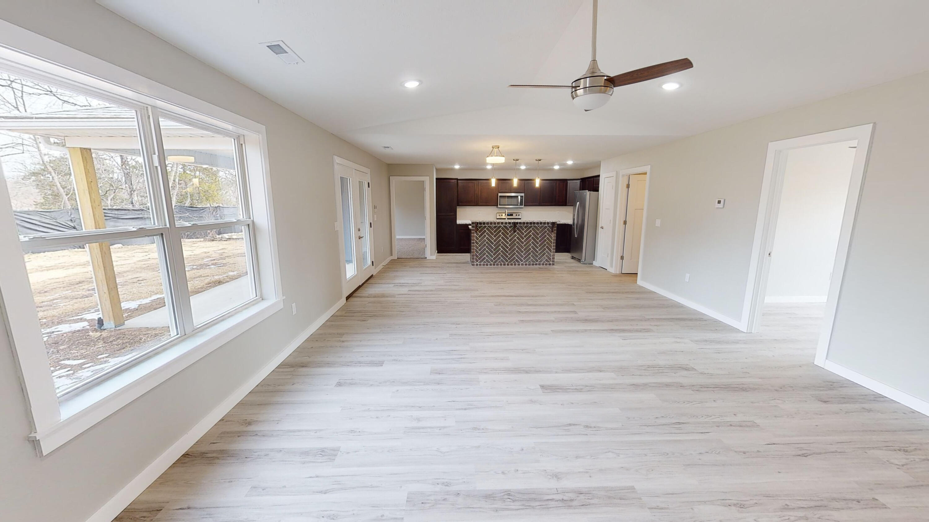 This Newly COMPLETED new custom build is loaded with upgrades...take a look at this!! 3rd party boat slip available (additional $) less than 5 minutes away!! This home features 3 bedrooms, 2.5 baths, an office with custom shelving in various areas and a 3 car garage. Enter the front door to a wide open plan. This home features custom brick tile wrapping the spacious island, stainless steel appliances granite counter tops and subway tile on the backsplash finishing off this well equipped kitchen it also includes a matching refrigerator!! Upgraded modern style lighting makes this home bright and inviting! Every room has a remote controlled ceiling fan, including the office. The home features luxury vinyl flooring in the high traffic areas. The master suite features double bowl vanity, walk in shower, linen closet and a private water closet. The master closet is enormous!! On the opposite side of the home are 2 oversized guest bedrooms and a shared bath. Feel like relaxing outdoors? Enjoy the covered back porch which also has a ceiling fan to relax your cares away on your private oasis. Table Rock Lake is a short stroll away by road it is less than 900 feet away. This home is complete and ready to move it!! 3rd party boat slip available for additional money. Approximate measurements 10x20 with swim platform.